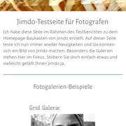 Bei Jimdo konnte man ursprünglich zwischen Grid-Galerie und Slideshow entscheiden. Im Galeriebereich können die Bilder angeklickt und vergrößert werden (nicht Fullscreen). Die Slideshow kann man im Fullscreen-Modus laufen lassen. Seit 2015 gibt es nun auch zwei Versionen der Mauer-Galerie (einmal vertikal und einmal horizontal). Außerdem haben sie die Slideshow vom Flashplayer gelöst. Neuer Pluspunkt für Jimdo. |
